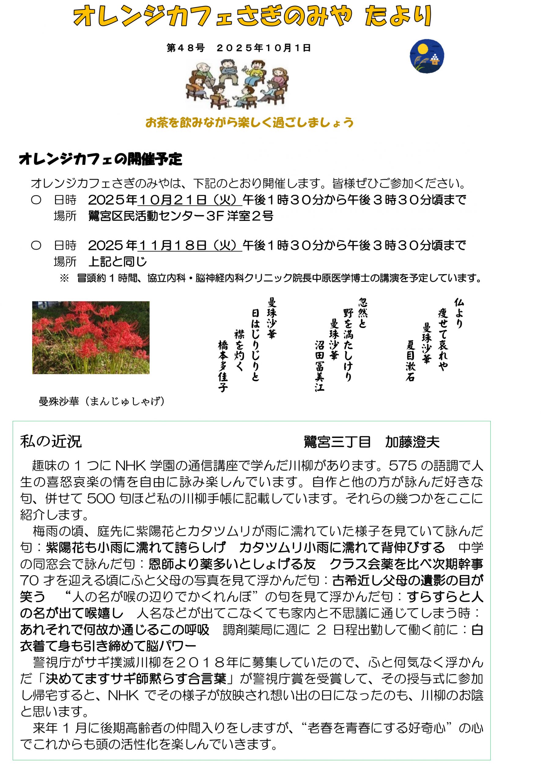 オレンジカフェさぎのみやは、下記のとおり開催します。