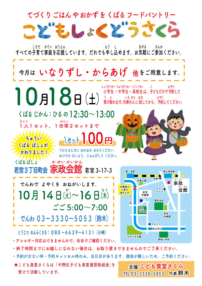 10月は、いなりずし・からあげなどをお配りします。